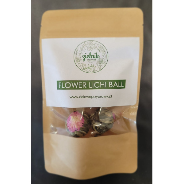 Flower Lichi Ball to wyjątkowe połączenie estetyki i smaku – kulka herbaty po wrzuceniu do gorącej wody rozkwita, tworząc niezwykłe widowisko. To kompozycja zielonej i białej herbaty z dodatkiem dekoracyjnego kwiatu wiecznika kulistego. Idealna dla miłośników herbacianych rytuałów oraz na prezent dla kogoś wyjątkowego.