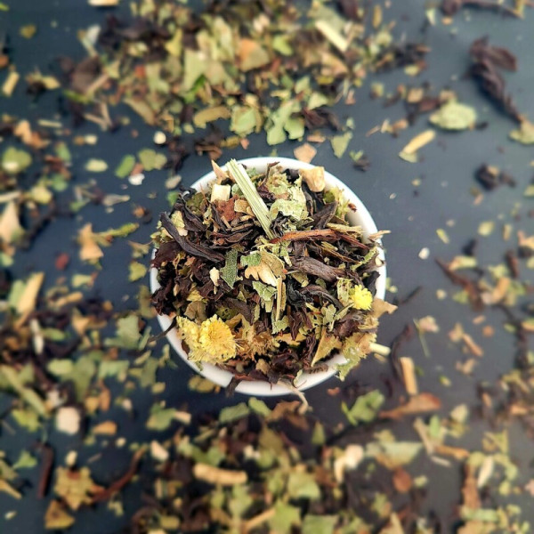 „Wschód słońca na Tarnicy” to aromatyczna kompozycja ziół i czarnej herbaty opracowana z myślą o osobach z podwyższonym poziomem cukru we krwi. Starannie dobrane składniki, takie jak borówka, rutwica czy mniszek, wspomagają naturalną gospodarkę cukrową organizmu, pobudzają produkcję insuliny i łagodzą stany zapalne.