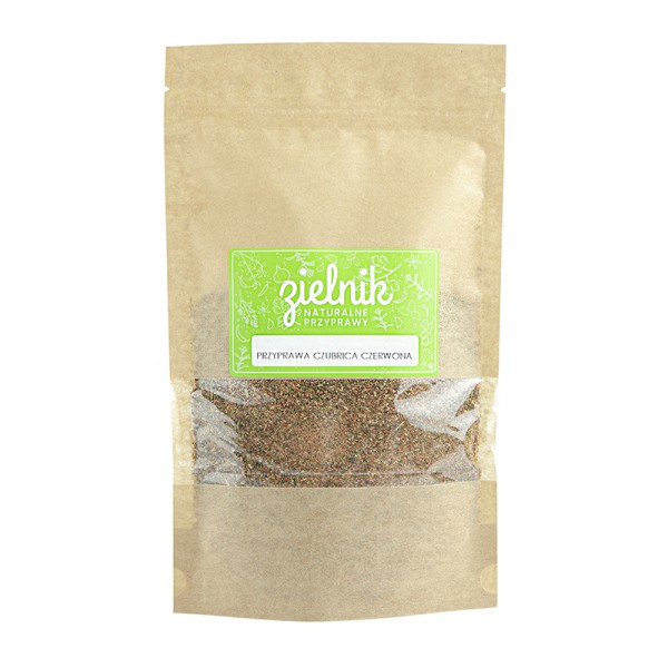 Czubrica Czerwona to znana i ceniona mieszanka przypraw inspirowana kuchnią bałkańską. W jej składzie znajdziesz m.in. paprykę słodką, cząber, czosnek, czarnuszkę, pomidora i pieprz czarny. Pikantna i pełna ziołowej głębi, doskonale podkreśla smak zarówno ciepłych, jak i zimnych potraw.