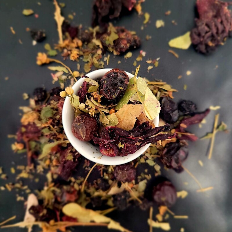 Dodatek lipy oraz liści poziomki i jeżyny łagodzi działanie naparu, nadając mu delikatnie ziołowy charakter i wspierając działanie przeciwzapalne. Herbata doskonale sprawdzi się zarówno jako codzienny napój wspomagający odporność, jak i rozgrzewająca herbata pita w trakcie infekcji.